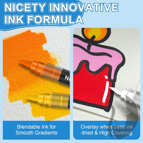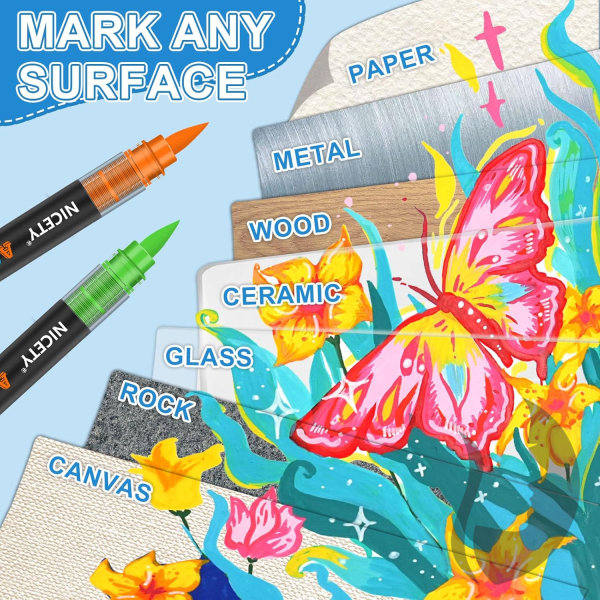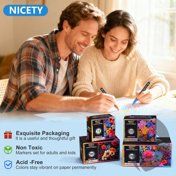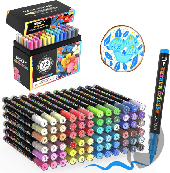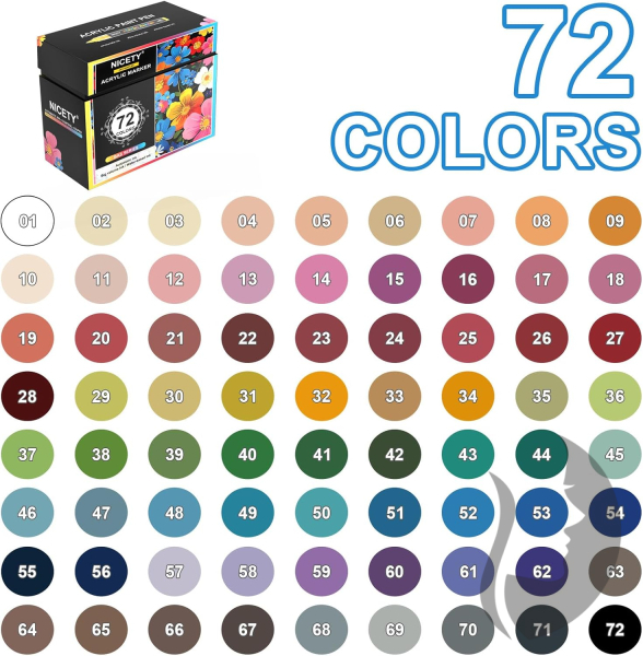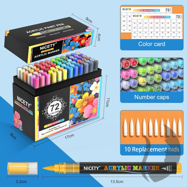 NICETY Acrylic Brush Markers - akrylové fixy - sada 72 ks - akrylové markery se štětečkovým hrotem. Jsou perfetktní na malování podle čísel.