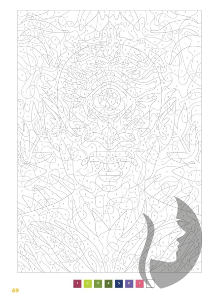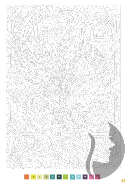 Pokud máte rádi vybarvování podle čísel a nechcete jen tak jednoduchý a triviální obrázek, je tato kniha pro vás jasná volba! Na každé straně je vytoštěný výběr barev. které si připravíte a budete s nimi obrázek podle odpovídajících čísel vybarvovat. Barvy si samozřejmě můžete i upravit podle sebe, nebo také můžete vzít do ruky třeba jen černý liner a místo barev třeba tečkovat, šrafovat, čárkovat apod. Překvapí vás, jak výsledný obrázek bude krásně vypadat :-).