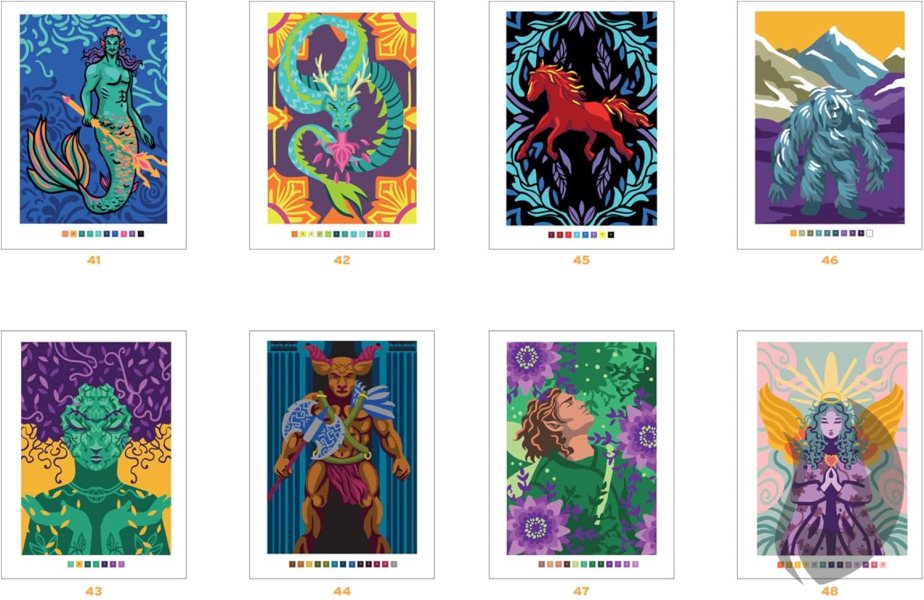 Obrázky fantastických zvířat a bytostí - mytologie - Coloriages mystères - Animaux fantastiques et créatures mythologiques