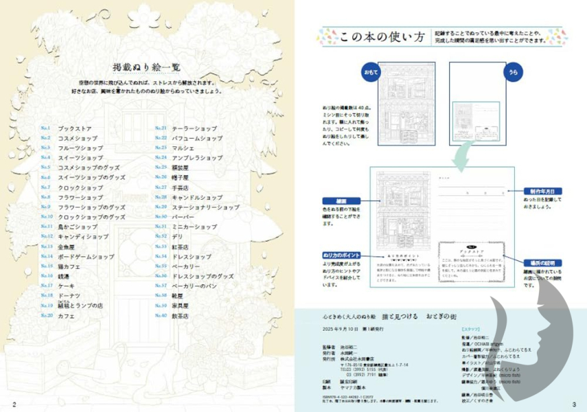 Tato okouzlující omalovánková kniha vás zavede do uliček tajemného pohádkového městečka, kde se dvě kočky náhodou ztratí a každá z nich začne hledat tu druhou. Při svém pátrání procházejí pestrou obchodní čtvrtí plnou kouzelných výloh – od pekařství a cukrárny přes obchod s šaty až po fantazijní obchody, které v reálném světě neexistují.