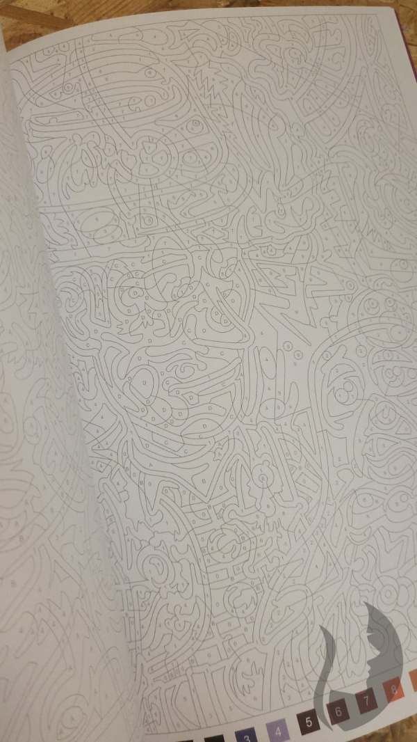 Pokud máte rádi vybarvování podle čísel a nechcete jen tak jednoduchý a triviální obrázek, je tato kniha pro vás jasná volba! Na každé straně je vytoštěný výběr barev. které si připravíte a budete s nimi obrázek podle odpovídajících čísel vybarvovat. Barvy si samozřejmě můžete i upravit podle sebe, nebo také můžete vzít do ruky třeba jen černý liner a místo barev třeba tečkovat, šrafovat, čárkovat apod. Překvapí vás, jak výsledný obrázek bude krásně vypadat :-).