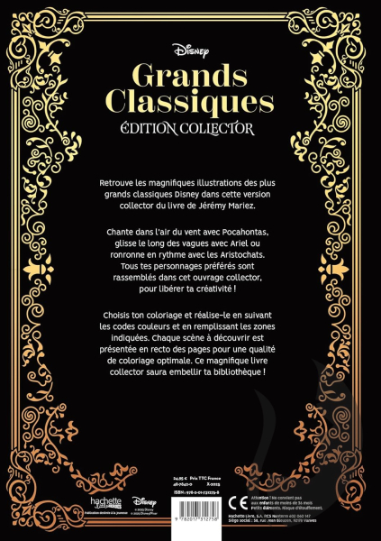 Objevte nádherné ilustrace největších disneyovských klasik v této sběratelské edici knihy Jérémyho Marieze. Zpívejte si s větrem s Pocahontas, klouzejte po vlnách s Ariel nebo si přeďte v rytmu s Aristokočkami. Všechny vaše oblíbené postavy jsou shromážděny v této sběratelské edici a přímo vybízí k tomu, abyste popustili uzdu své kreativitě. Vyberte si obrázek, na který máte zrovna chuť a probuďte jej k životu podle barevných kódů vybarvením vyznačených polí. Pro každý obrázek je v knize v přehledu barevný výsledek. Tato nádherná sběratelská edice obohatí vaši knihovnu!