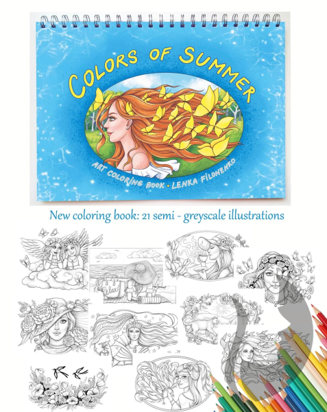 Kniha plná letní pohody, volna a rozevlátých vlasů :-). Pokud máte rádi pastelky, barvy a barevný svět a chcete, aby na vás dýchl dovolenková letní sezóna, i když třeba právě nemůžete nikam odjet, obrázky z knihy Colors of Summer (Barvy léta), novinky od Lenky Filonenko, jsou pro vás to pravé.