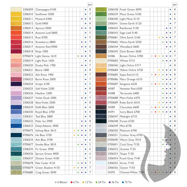 Jedná se měkké pastelky, které mají celkem širokou tuhu o průměru 5mm. NOVĚ MÁ DERWENT OD 1.10. v nabídce má firma Derwent až 72 odstínů. Přírodní odstíny jsou velmi vhodné pro krajinky a portréty zvířat.