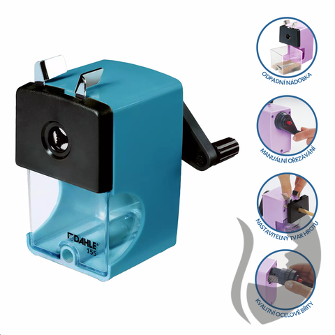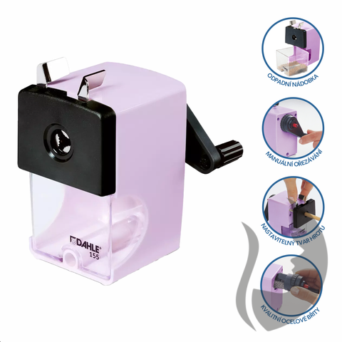 Mechanické ořezávátko s kvalitními ocelovými noži a nastavitelným tvarem hrotu. Snadná a rychlá výměna frézovací jednotky, velkokapacitní průhledná odpadní nádoba. Pevná svorka pro stabilní upevnění ořezávátka ke stolu.